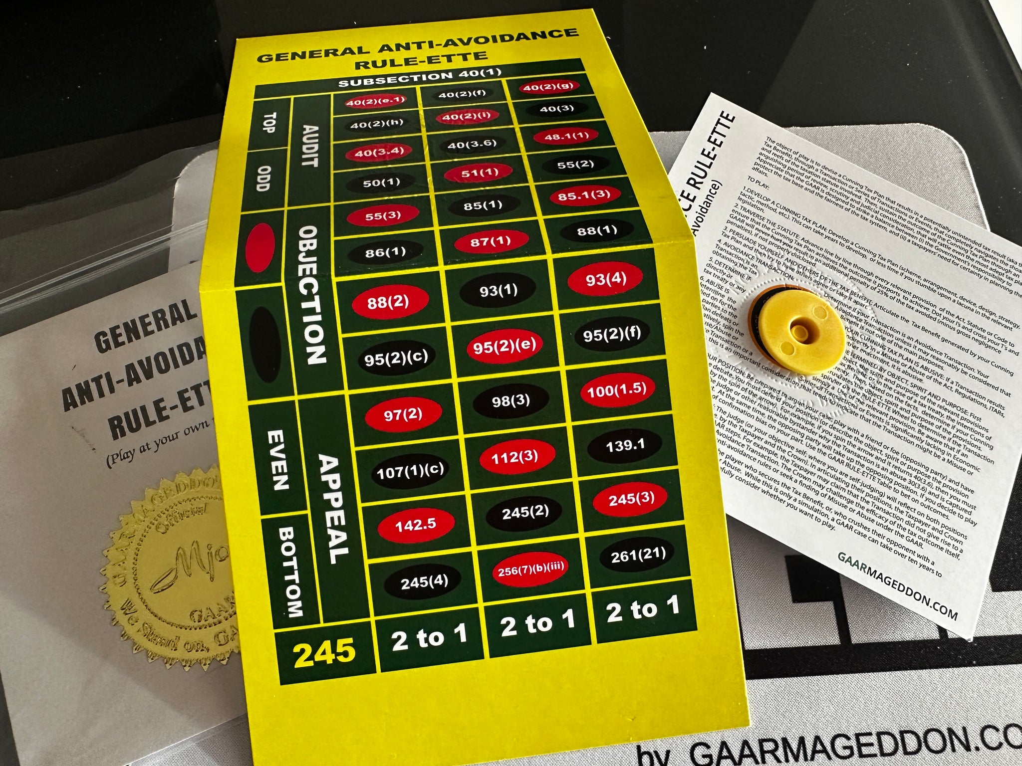 This subsection 40(1) edition illustrates the principals in the Landrus line of cases and now Quebecor and Wusiwug and functions as a reminder that every tax scheme is doomed when hubris takes over. Whether spun for amusement or contemplation, Rule-Ette reveals the strange intersection of law, luck, and interpretation that defines modern taxation.